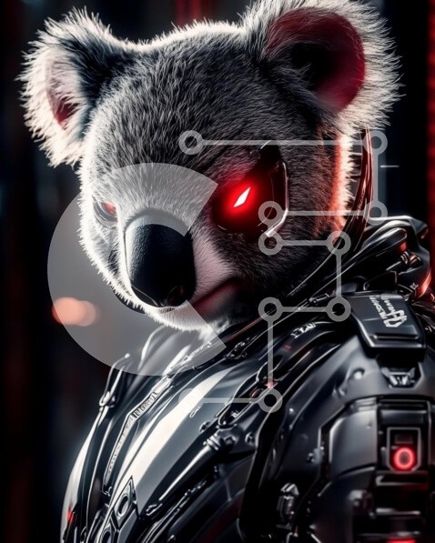 Υπάρχει δυνατότητα προσωποποίησης με δική σας φωτογραφία και προσαρμογής διαστάσεων κατόπιν παραγγελίας. Το συγεκεριμενο Puzzle 10x10 cm – 25 κομμ παρουσιαζει Η εικόνα απεικονίζει ένα φουτουριστικό κοάλα με λαμπερά κόκκινα μάτια και ένα ρομποτικό κοστούμι υψηλής τεχνολογίας. Η γούνα του κοάλα είναι λεπτομερής και ρεαλιστική, έρχεται σε έντονη αντίθεση με την κομψή, μεταλλική πανοπλία που φοράει. Τ