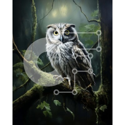 Υπάρχει δυνατότητα προσωποποίησης με δική σας φωτογραφία και προσαρμογής διαστάσεων κατόπιν παραγγελίας. Το συγεκεριμενο Puzzle 10x10 cm – 25 κομμ παρουσιαζει Αυτή η εικόνα παρουσιάζει μια λευκή κουκουβάγια σκαρφαλωμένη σε ένα κλαδί δέντρου σε ένα σκοτεινό δάσος. Η κουκουβάγια έχει εντυπωσιακά κίτρινα μάτια και τα μεγαλοπρεπή φτερά της απλωμένα. Το φόντο αποτελείται από σκούρα δέντρα και βρύα, δημ
