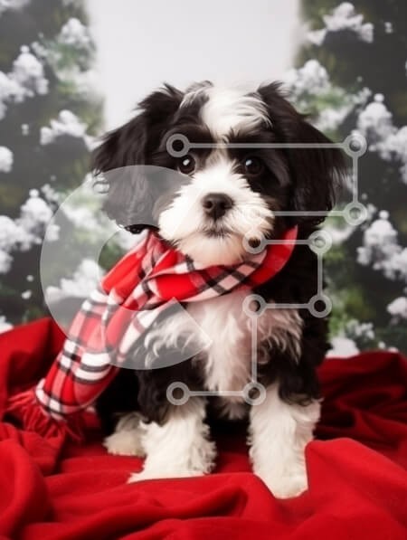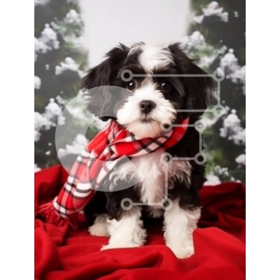 Υπάρχει δυνατότητα προσωποποίησης με δική σας φωτογραφία και προσαρμογής διαστάσεων κατόπιν παραγγελίας. Το συγεκεριμενο Puzzle 10x10 cm – 25 κομμ παρουσιαζει Αυτή η εικόνα παρουσιάζει ένα αξιολάτρευτο ασπρόμαυρο κουτάβι τυλιγμένο με ένα κόκκινο καρό μαντήλι, που κάθεται σε μια κόκκινη κουβέρτα. Το φόντο περιλαμβάνει χιονισμένα δέντρα, δημιουργώντας μια ζεστή και γιορτινή ατμόσφαιρα. Τα μεγάλα, εκ