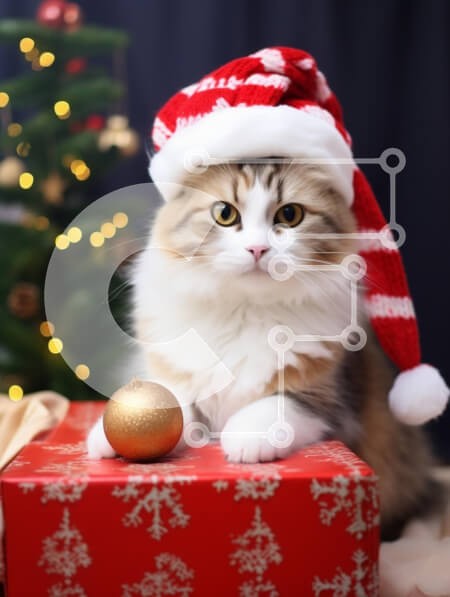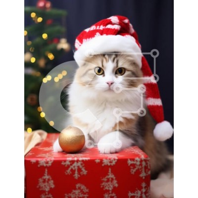 Υπάρχει δυνατότητα προσωποποίησης με δική σας φωτογραφία και προσαρμογής διαστάσεων κατόπιν παραγγελίας. Το συγεκεριμενο Puzzle 10x10 cm – 25 κομμ παρουσιαζει Αυτή η εικόνα παρουσιάζει μια χνουδωτή γάτα στολισμένη με ένα εορταστικό κόκκινο και άσπρο ριγέ καπέλο Άγιου Βασίλη, που κάθεται πάνω σε ένα κουτί δώρου με λαμπερά τυλίγματα διακοσμημένα με σχέδια νιφάδων χιονιού. Η γάτα έχει εντυπωσιακά κίτ