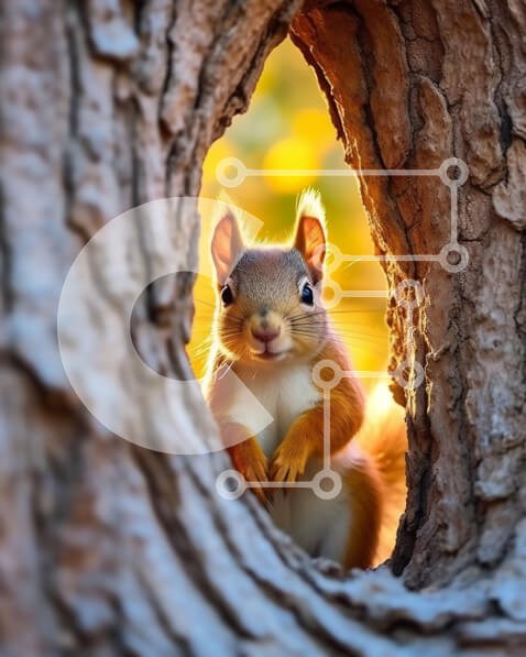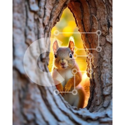Υπάρχει δυνατότητα προσωποποίησης με δική σας φωτογραφία και προσαρμογής διαστάσεων κατόπιν παραγγελίας. Το συγεκεριμενο Puzzle 10x10 cm – 25 κομμ παρουσιαζει Αυτή η εικόνα είναι ενός κόκκινου σκίουρου που κρυφοκοιτάζει από μια κοιλότητα δέντρου. Είναι μια κοντινή λήψη του χαριτωμένου ζώου και των λεπτομερειών του δέντρου μέσα στο οποίο βρίσκεται. Το φόντο είναι θολό για να εστιάσετε στο θέμα. Έν