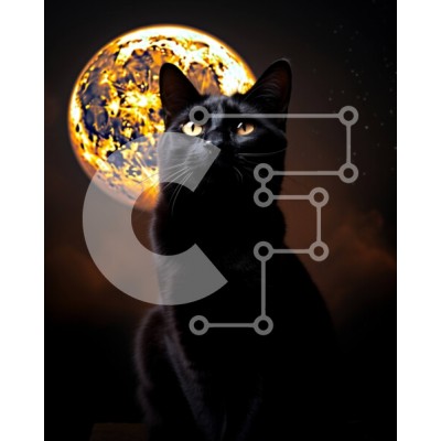 Υπάρχει δυνατότητα προσωποποίησης με δική σας φωτογραφία και προσαρμογής διαστάσεων κατόπιν παραγγελίας. Το συγεκεριμενο Puzzle 10x10 cm – 25 κομμ παρουσιαζει Αυτή η εικόνα παρουσιάζει μια μαύρη γάτα που κάθεται μπροστά σε μια πανσέληνο. Η γάτα αιχμαλωτίζεται σε σιλουέτα απέναντι στο λαμπερό φεγγάρι, δημιουργώντας μια μυστηριώδη και σαγηνευτική σκηνή. Ο σκοτεινός νυχτερινός ουρανός προσθέτει στην