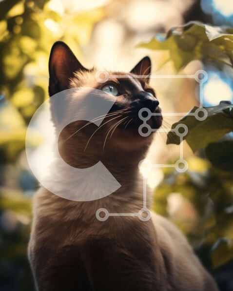 Υπάρχει δυνατότητα προσωποποίησης με δική σας φωτογραφία και προσαρμογής διαστάσεων κατόπιν παραγγελίας. Το συγεκεριμενο Puzzle 10x10 cm – 25 κομμ παρουσιαζει Η εικόνα δείχνει μια σιαμαία γάτα να κάθεται στη μέση κάποιων φύλλων, κοιτάζοντας ψηλά στον ουρανό. Η γάτα έχει μπλε μάτια και φαίνεται να απολαμβάνει το περιβάλλον της. Είναι πιθανό ότι η γάτα είναι περίεργη για το τι συμβαίνει γύρω της, γι