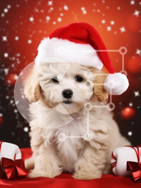 Υπάρχει δυνατότητα προσωποποίησης με δική σας φωτογραφία και προσαρμογής διαστάσεων κατόπιν παραγγελίας. Το συγεκεριμενο Puzzle 10x10 cm – 25 κομμ παρουσιαζει Αυτή η εικόνα απεικονίζει ένα χαριτωμένο κουτάβι που φορά ένα καπέλο Άγιου Βασίλη, που κάθεται σε ένα εορταστικό κόκκινο φόντο στολισμένο με νιφάδες χιονιού και λαμπερά φώτα. Το χνουδωτό τρίχωμα και τα εκφραστικά μάτια του κουταβιού του δίνο