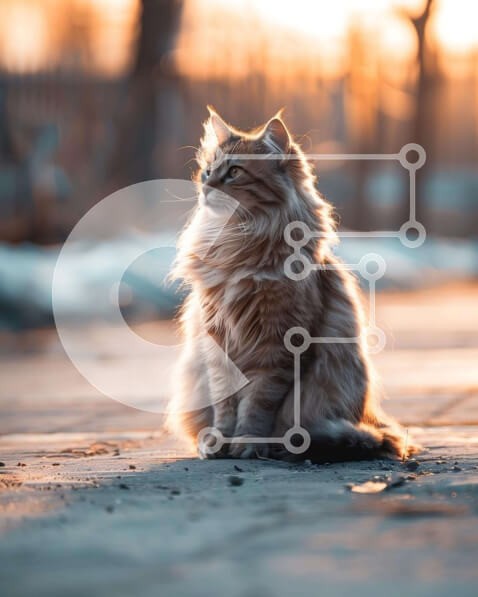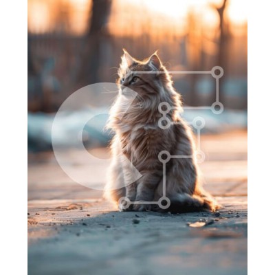 Υπάρχει δυνατότητα προσωποποίησης με δική σας φωτογραφία και προσαρμογής διαστάσεων κατόπιν παραγγελίας. Το συγεκεριμενο Puzzle 10x10 cm – 25 κομμ παρουσιαζει Η εικόνα απεικονίζει μια χνουδωτή, μακρυμάλλη γάτα να κάθεται στο έδαφος και να κοιτάζει το ηλιοβασίλεμα. Είναι πιθανό η γάτα να περιμένει τον ιδιοκτήτη της να γυρίσει σπίτι για να τη χαϊδέψουν ή να την αγκαλιάσουν. Η γάτα μπορεί επίσης να ε