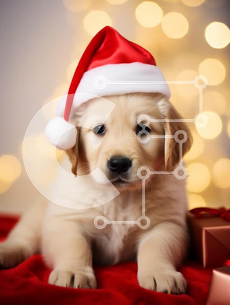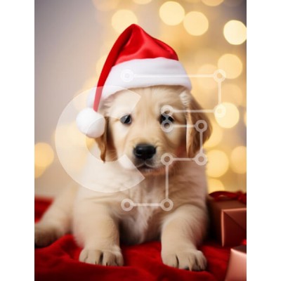 Υπάρχει δυνατότητα προσωποποίησης με δική σας φωτογραφία και προσαρμογής διαστάσεων κατόπιν παραγγελίας. Το συγεκεριμενο Puzzle 10x10 cm – 25 κομμ παρουσιαζει Η εικόνα απεικονίζει ένα αξιολάτρευτο κουτάβι Golden Retriever που φορά ένα εορταστικό κόκκινο καπέλο Άγιου Βασίλη, με μια απαλή έκφραση που αιχμαλωτίζει το πνεύμα των γιορτών. Το κουτάβι στηρίζεται σε μια βελούδινη κόκκινη κουβέρτα, περιτρι