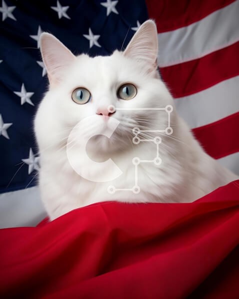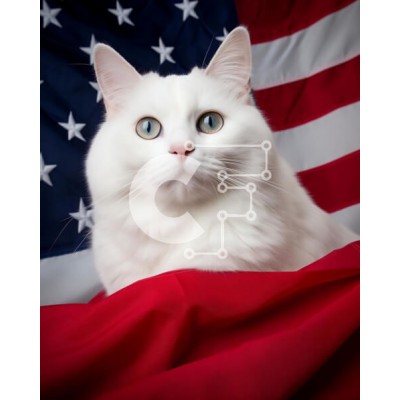 Υπάρχει δυνατότητα προσωποποίησης με δική σας φωτογραφία και προσαρμογής διαστάσεων κατόπιν παραγγελίας. Το συγεκεριμενο Puzzle 10x10 cm – 25 κομμ παρουσιαζει Αυτή η εικόνα παρουσιάζει μια λευκή γάτα που κάθεται πάνω από μια αμερικανική σημαία, κοιτάζοντας απευθείας την κάμερα με ορθάνοιχτα μάτια. Η έκφραση της γάτας υποδηλώνει περιέργεια και μια ένδειξη προσοχής, δημιουργώντας μια ενδιαφέρουσα σκ