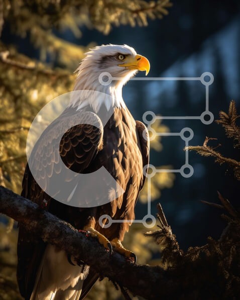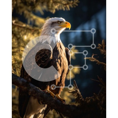Υπάρχει δυνατότητα προσωποποίησης με δική σας φωτογραφία και προσαρμογής διαστάσεων κατόπιν παραγγελίας. Το συγεκεριμενο Puzzle 10x10 cm – 25 κομμ παρουσιαζει Αυτή η εικόνα είναι ενός φαλακρού αετού σκαρφαλωμένο σε ένα κλαδί δέντρου σε ένα δάσος. Ο αετός είναι το επίκεντρο της εικόνας, με το αιχμηρό ράμφος και τα διαπεραστικά μάτια του σε πλήρη προβολή. Το φόντο είναι ένα καταπράσινο δάσος, που πρ