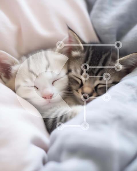 Υπάρχει δυνατότητα προσωποποίησης με δική σας φωτογραφία και προσαρμογής διαστάσεων κατόπιν παραγγελίας. Το συγεκεριμενο Puzzle 10x10 cm – 25 κομμ παρουσιαζει Αυτή η εικόνα παρουσιάζει δύο γατάκια στριμωγμένα σε μια κουβέρτα. Ένα από τα γατάκια κοιμάται ενώ το άλλο είναι κουλουριασμένο δίπλα του. Και τα δύο γατάκια έχουν τα μάτια τους ανοιχτά, υποδεικνύοντας ότι μπορεί να είναι ακόμα ξύπνια. Η ηλι