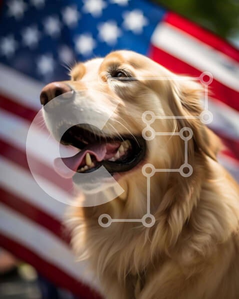 Υπάρχει δυνατότητα προσωποποίησης με δική σας φωτογραφία και προσαρμογής διαστάσεων κατόπιν παραγγελίας. Το συγεκεριμενο Puzzle 10x10 cm – 25 κομμ παρουσιαζει Η εικόνα απεικονίζει ένα σκυλί Golden Retriever να στέκεται μπροστά από μια αμερικανική σημαία. Ο σκύλος έχει τη γλώσσα του έξω, κάτι που δείχνει ότι είναι χαρούμενος και ενθουσιασμένος με την περίσταση. Φαίνεται επίσης να κοιτάζει ψηλά στην
