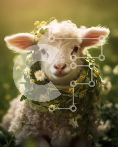 Υπάρχει δυνατότητα προσωποποίησης με δική σας φωτογραφία και προσαρμογής διαστάσεων κατόπιν παραγγελίας. Το συγεκεριμενο Puzzle 10x10 cm – 25 κομμ παρουσιαζει Η εικόνα δείχνει ένα μικρό, λευκό πρόβατο να κάθεται σε ένα χωράφι με γρασίδι με λουλούδια στο λαιμό του. Το αρνί φαίνεται χαρούμενο και ικανοποιημένο καθώς κοιτάζει την κάμερα, αποπνέοντας μια παιχνιδιάρικη και περίεργη συμπεριφορά. Ένα μο