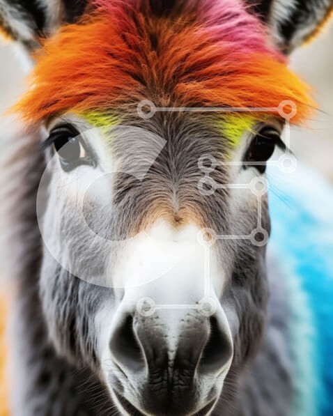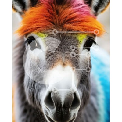 Υπάρχει δυνατότητα προσωποποίησης με δική σας φωτογραφία και προσαρμογής διαστάσεων κατόπιν παραγγελίας. Το συγεκεριμενο Puzzle 10x10 cm – 25 κομμ παρουσιαζει Αυτή η εικόνα παρουσιάζει έναν γάιδαρο με γκρι σώμα και πολύχρωμη χαίτη. Η χαίτη είναι βαμμένη σε διάφορα ζωηρά χρώματα όπως ροζ, μωβ, μπλε και κίτρινο. Ο γάιδαρος έχει καστανά μάτια και όρθια αυτιά και κοιτάζει κατευθείαν την κάμερα με μια