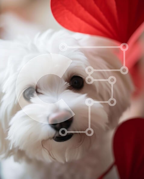Υπάρχει δυνατότητα προσωποποίησης με δική σας φωτογραφία και προσαρμογής διαστάσεων κατόπιν παραγγελίας. Το συγεκεριμενο Puzzle 10x10 cm – 25 κομμ παρουσιαζει Αυτή η εικόνα δείχνει ένα μικρό λευκό σκυλί να στέκεται μπροστά από κόκκινα χάρτινα φανάρια σε σχήμα καρδιάς. Ο σκύλος κοιτάζει κατευθείαν την κάμερα και φαίνεται να απολαμβάνει το περιβάλλον του. Υπάρχουν επίσης αρκετές κόκκινες καρδιές διά