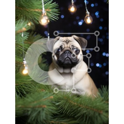 Υπάρχει δυνατότητα προσωποποίησης με δική σας φωτογραφία και προσαρμογής διαστάσεων κατόπιν παραγγελίας. Το συγεκεριμενο Puzzle 10x10 cm – 25 κομμ παρουσιαζει Η εικόνα δείχνει ένα σκυλί πατημασιά που κάθεται ανάμεσα σε πράσινα κλαδιά πεύκου, που φωτίζεται από απαλά λαμπερά φώτα. Το φόντο είναι σκούρο με αστραφτερό εφέ bokeh, δημιουργώντας μια εορταστική ατμόσφαιρα. Η πατημασιά έχει μια περίεργη έκ