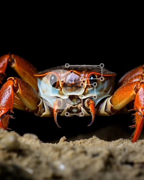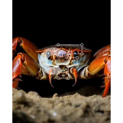 Υπάρχει δυνατότητα προσωποποίησης με δική σας φωτογραφία και προσαρμογής διαστάσεων κατόπιν παραγγελίας. Το συγεκεριμενο Puzzle 10x10 cm – 25 κομμ παρουσιαζει Η εικόνα απεικονίζει ένα καβούρι να στέκεται στην άμμο, με το κεφάλι του στραμμένο προς την κάμερα. Το φόντο είναι σκούρο, τονίζοντας τα μεγάλα μάτια και τα αιχμηρά νύχια του καβουριού. Είναι ένα κοντινό πλάνο που αποτυπώνει τις λεπτομέρειες