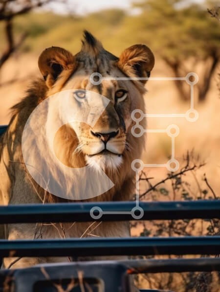 Υπάρχει δυνατότητα προσωποποίησης με δική σας φωτογραφία και προσαρμογής διαστάσεων κατόπιν παραγγελίας. Το συγεκεριμενο Puzzle 10x10 cm – 25 κομμ παρουσιαζει Αυτή η εικόνα παρουσιάζει ένα λιοντάρι να στέκεται σε έναν χωματόδρομο στην αφρικανική σαβάνα. Το λιοντάρι έχει μια δασύτριχη χαίτη και ένα χρυσοκαφέ παλτό και κοιτάζει κατευθείαν την κάμερα με μια άγρια έκφραση στο πρόσωπό του. Το φόντο ε