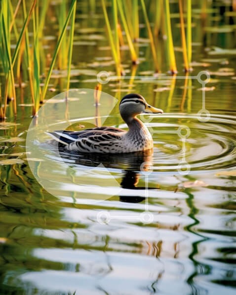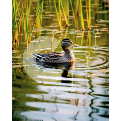 Υπάρχει δυνατότητα προσωποποίησης με δική σας φωτογραφία και προσαρμογής διαστάσεων κατόπιν παραγγελίας. Το συγεκεριμενο Puzzle 10x10 cm – 25 κομμ παρουσιαζει Αυτή η εικόνα παρουσιάζει μια πάπια που κολυμπά σε μια ήσυχη λιμνούλα με ψηλά καλάμια στο βάθος. Η πάπια είναι το κύριο επίκεντρο της εικόνας και αποτυπώνεται στη μέση της κολύμβησης, με τους κυματισμούς του νερού να δημιουργούν ένα γαλήνιο