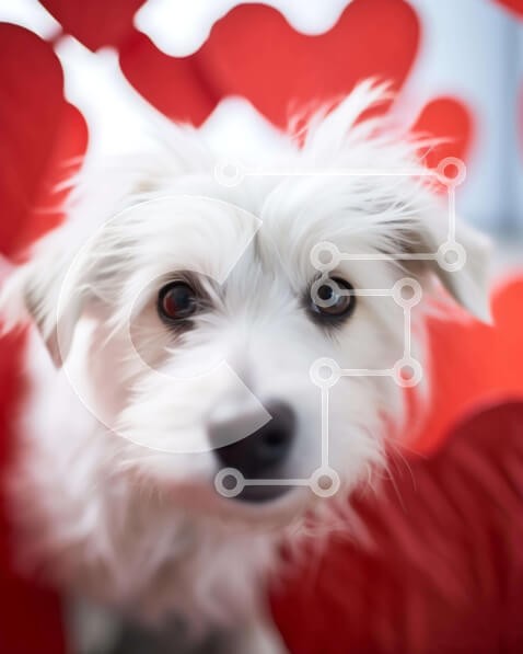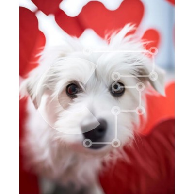 Υπάρχει δυνατότητα προσωποποίησης με δική σας φωτογραφία και προσαρμογής διαστάσεων κατόπιν παραγγελίας. Το συγεκεριμενο Puzzle 10x10 cm – 25 κομμ παρουσιαζει Αυτή η εικόνα παρουσιάζει έναν λευκό σκύλο να στέκεται στη μέση κόκκινων καρδιών. Ο σκύλος κοιτάζει απευθείας την κάμερα, η οποία φαίνεται μέσα από το σκηνικό σε σχήμα καρδιάς. Είναι μια τέλεια φωτογραφία για την ημέρα του Αγίου Βαλεντίνου ή