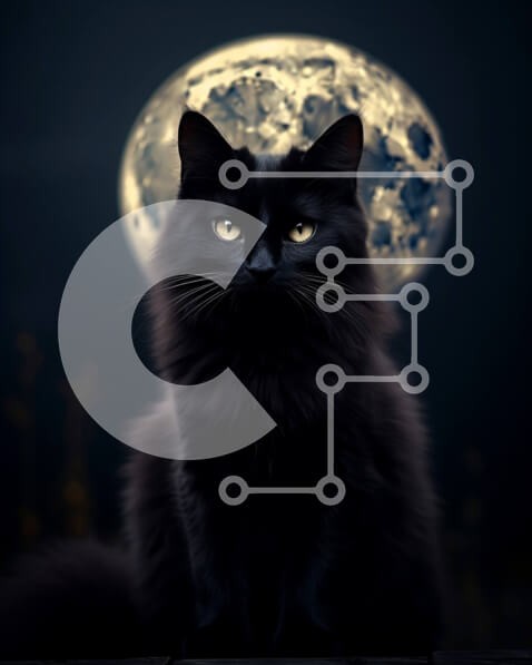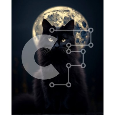 Υπάρχει δυνατότητα προσωποποίησης με δική σας φωτογραφία και προσαρμογής διαστάσεων κατόπιν παραγγελίας. Το συγεκεριμενο Puzzle 10x10 cm – 25 κομμ παρουσιαζει Αυτή η εικόνα παρουσιάζει μια μαύρη γάτα που κάθεται σε μια ξύλινη επιφάνεια, κοιτάζοντας την πανσέληνο στο βάθος. Τα μάτια της γάτας αντανακλούν το φως του φεγγαριού, δίνοντάς της έναν αέρα μυστηρίου και ίντριγκας. Η ξύλινη επιφάνεια προσθέ