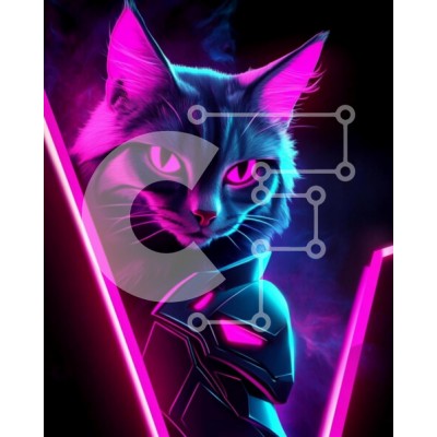 Υπάρχει δυνατότητα προσωποποίησης με δική σας φωτογραφία και προσαρμογής διαστάσεων κατόπιν παραγγελίας. Το συγεκεριμενο Puzzle 10x10 cm – 25 κομμ παρουσιαζει Αυτή η εικόνα παρουσιάζει μια στυλιζαρισμένη γάτα με λαμπερά ροζ μάτια και πολύχρωμη γούνα, σε σκούρο, καπνιστό φόντο. Η έκφραση της γάτας είναι εντυπωσιακά τολμηρή και συνδυάζεται με ένα φουτουριστικό σχέδιο πανοπλίας που έχει λαμπερούς τόν