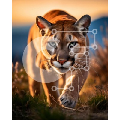 Υπάρχει δυνατότητα προσωποποίησης με δική σας φωτογραφία και προσαρμογής διαστάσεων κατόπιν παραγγελίας. Το συγεκεριμενο Puzzle 10x10 cm – 25 κομμ παρουσιαζει Αυτή η εικόνα παρουσιάζει ένα λιοντάρι του βουνού που περπατά σε μια περιοχή με γρασίδι το ηλιοβασίλεμα. Το λιοντάρι του βουνού είναι ένα μεγαλόσωμο και μεγαλοπρεπές ζώο με ένα καστανόξανθο παλτό και ένα κομψό, μυώδες σώμα. Τα μάτια του έχου