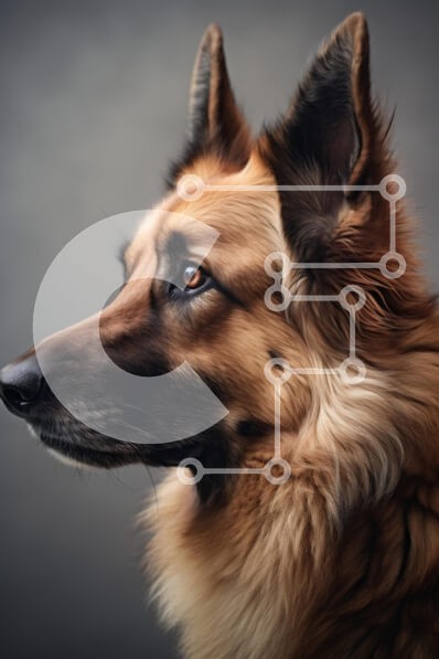 Υπάρχει δυνατότητα προσωποποίησης με δική σας φωτογραφία και προσαρμογής διαστάσεων κατόπιν παραγγελίας. Το συγεκεριμενο Puzzle 10x10 cm – 25 κομμ παρουσιαζει Αυτή η εικόνα παρουσιάζει ένα κοντινό προφίλ ενός Γερμανικού Ποιμενικού σκύλου, που δείχνει την εντυπωσιακή υφή της γούνας και τα εκφραστικά μάτια του. Το φόντο είναι μια απαλή, θολή κλίση που ενισχύει τα χαρακτηριστικά του σκύλου. Τα αυτιά
