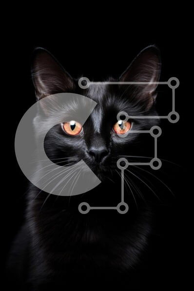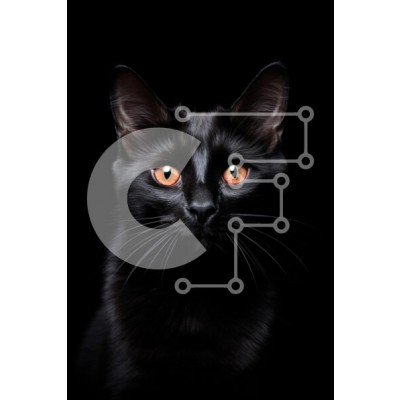 Υπάρχει δυνατότητα προσωποποίησης με δική σας φωτογραφία και προσαρμογής διαστάσεων κατόπιν παραγγελίας. Το συγεκεριμενο Puzzle 10x10 cm – 25 κομμ παρουσιαζει Αυτή η εικόνα παρουσιάζει ένα εντυπωσιακό κοντινό πλάνο μιας μαύρης γάτας σε μαύρο φόντο. Η γούνα της γάτας είναι γυαλιστερή και σαφώς καθορισμένη, αναδεικνύοντας τα χαρακτηριστικά της. Τα λαμπερά πορτοκαλί μάτια του ξεχωρίζουν έντονα, δημιο