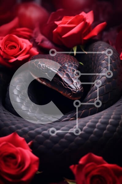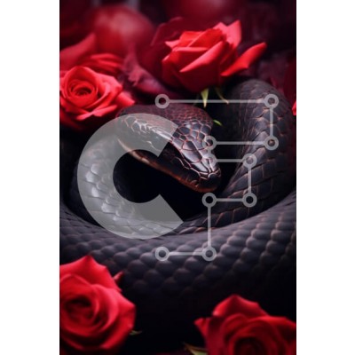Υπάρχει δυνατότητα προσωποποίησης με δική σας φωτογραφία και προσαρμογής διαστάσεων κατόπιν παραγγελίας. Το συγεκεριμενο Puzzle 10x10 cm – 25 κομμ παρουσιαζει Η εικόνα απεικονίζει ένα εντυπωσιακό μαύρο φίδι κουλουριασμένο ανάμεσα σε ζωηρά κόκκινα τριαντάφυλλα. Τα λέπια του φιδιού αντανακλούν μια γυαλιστερή, σκούρα απόχρωση, που έρχεται σε όμορφη αντίθεση με τα απαλά πέταλα των τριαντάφυλλων που το