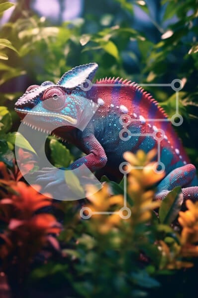 Υπάρχει δυνατότητα προσωποποίησης με δική σας φωτογραφία και προσαρμογής διαστάσεων κατόπιν παραγγελίας. Το συγεκεριμενο Puzzle 10x10 cm – 25 κομμ παρουσιαζει Αυτή η εικόνα παρουσιάζει έναν πολύχρωμο χαμαιλέοντα που κάθεται σε ένα φυλλώδες κλαδί στη μέση μιας ζούγκλας. Ο χαμαιλέοντας είναι όμορφα καμουφλαρισμένος με το περιβάλλον του και τα ζωηρά χρώματα και τα περίπλοκα μοτίβα του δημιουργούν ένα