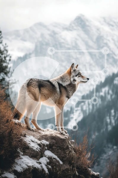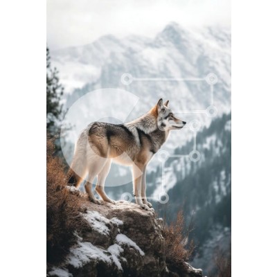 Υπάρχει δυνατότητα προσωποποίησης με δική σας φωτογραφία και προσαρμογής διαστάσεων κατόπιν παραγγελίας. Το συγεκεριμενο Puzzle 10x10 cm – 25 κομμ παρουσιαζει Αυτή η εικόνα απεικονίζει έναν γκρίζο λύκο να στέκεται σε μια βραχώδη επιφάνεια και να έχει θέα σε μια χιονισμένη οροσειρά. Ο λύκος έχει μια αδύνατη και μυώδης κατασκευή, με ένα γούνινο τρίχωμα που είναι ένα μείγμα γκρι και καφέ. Πιάνει ένα