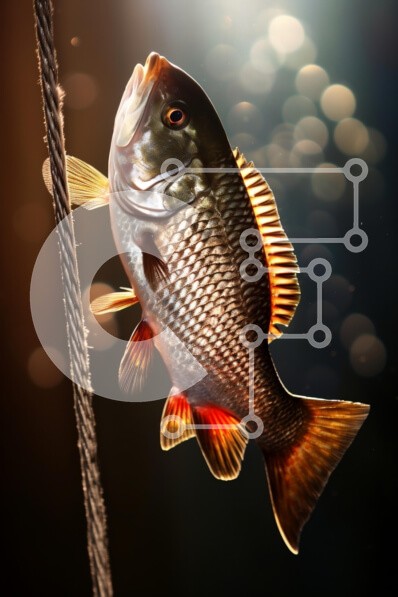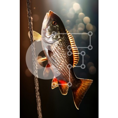 Υπάρχει δυνατότητα προσωποποίησης με δική σας φωτογραφία και προσαρμογής διαστάσεων κατόπιν παραγγελίας. Το συγεκεριμενο Puzzle 10x10 cm – 25 κομμ παρουσιαζει Αυτή η εικόνα παρουσιάζει ένα ψάρι πιασμένο και κρεμασμένο από ένα σχοινί, που φωτίζεται από απαλό φωτισμό που δημιουργεί μια ονειρική ατμόσφαιρα. Το ψάρι έχει ζωηρά χρώματα, συμπεριλαμβανομένων των αποχρώσεων του ασημί και του κοκκινωπό-πορ