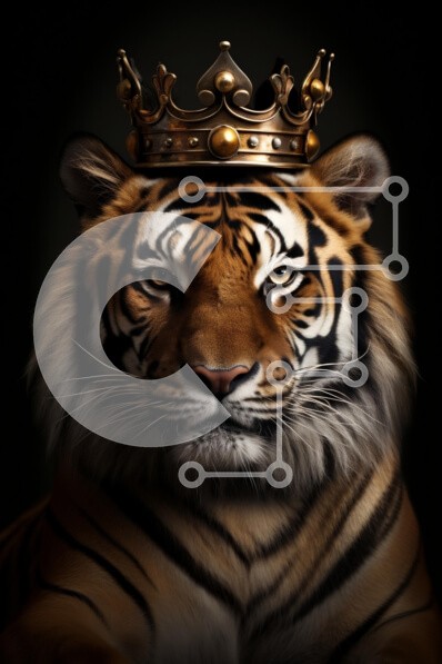 Υπάρχει δυνατότητα προσωποποίησης με δική σας φωτογραφία και προσαρμογής διαστάσεων κατόπιν παραγγελίας. Το συγεκεριμενο Puzzle 10x10 cm – 25 κομμ παρουσιαζει Αυτή η εικόνα παρουσιάζει μια μεγαλοπρεπή τίγρη στολισμένη με ένα στέμμα, που συμβολίζει τη βασιλεία και τη δύναμη. Οι εντυπωσιακές πορτοκαλί και μαύρες ρίγες της τίγρης ξεχωρίζουν έντονα σε σκούρο φόντο, δημιουργώντας μια δραματική και σαγη