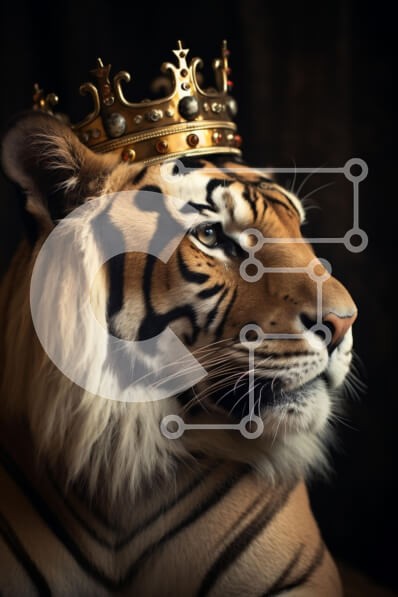 Υπάρχει δυνατότητα προσωποποίησης με δική σας φωτογραφία και προσαρμογής διαστάσεων κατόπιν παραγγελίας. Το συγεκεριμενο Puzzle 10x10 cm – 25 κομμ παρουσιαζει Η εικόνα απεικονίζει μια μεγαλοπρεπή τίγρη στολισμένη με ένα χρυσό στέμμα. Το πρόσωπο της τίγρης αποτυπώνεται σε προφίλ, εμφανίζοντας τις εντυπωσιακές πορτοκαλί και μαύρες ρίγες της μαζί με μια παχιά γούνα γύρω από το λαιμό της. Το στέμμα εί