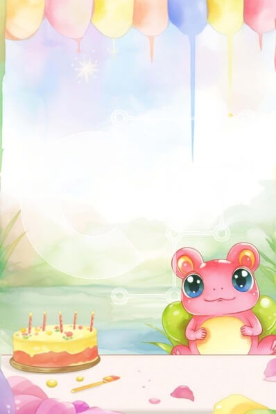 Υπάρχει δυνατότητα προσωποποίησης με δική σας φωτογραφία και προσαρμογής διαστάσεων κατόπιν παραγγελίας. Το συγεκεριμενο Puzzle 10x10 cm – 25 κομμ παρουσιαζει Αυτή η εικόνα παρουσιάζει έναν χαριτωμένο ροζ βάτραχο που κάθεται μπροστά από μια περίτεχνα διακοσμημένη τούρτα γενεθλίων, περιτριγυρισμένος από μπαλόνια και κεριά. Η εορταστική γιορτή φαίνεται να πραγματοποιείται σε εξωτερικούς χώρους, με π