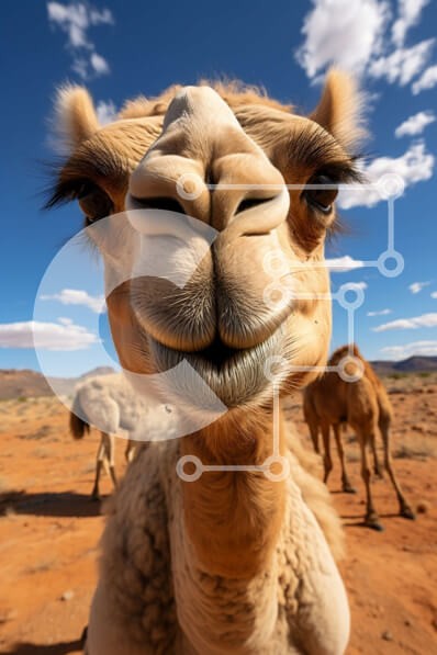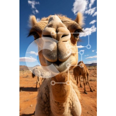 Υπάρχει δυνατότητα προσωποποίησης με δική σας φωτογραφία και προσαρμογής διαστάσεων κατόπιν παραγγελίας. Το συγεκεριμενο Puzzle 10x10 cm – 25 κομμ παρουσιαζει Αυτή η εικόνα είναι μια κοντινή λήψη του προσώπου μιας καμήλας που κοιτάζει απευθείας την κάμερα. Η καμήλα έχει μακριές βλεφαρίδες και απαλή, γούνινη μύτη. Το φόντο είναι ένας καταγάλανος ουρανός με μερικά χνουδωτά σύννεφα, που δημιουργούν μ