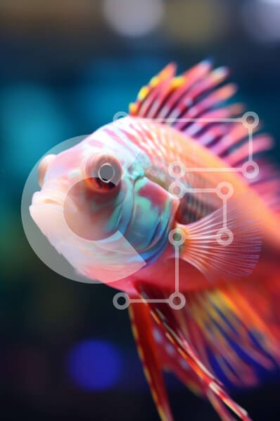 Υπάρχει δυνατότητα προσωποποίησης με δική σας φωτογραφία και προσαρμογής διαστάσεων κατόπιν παραγγελίας. Το συγεκεριμενο Puzzle 10x10 cm – 25 κομμ παρουσιαζει Αυτή η εικόνα παρουσιάζει ένα ζωηρόχρωμο ψάρι με μακριά, ρέοντα πτερύγια και μια μεγάλη, πολύχρωμη ουρά. Το ψάρι κολυμπάει προς την κάμερα, με τα μάτια καρφωμένα στον φακό. Το φόντο είναι μια σκοτεινή, θολή θολούρα, που αντιπροσωπεύει το νερ