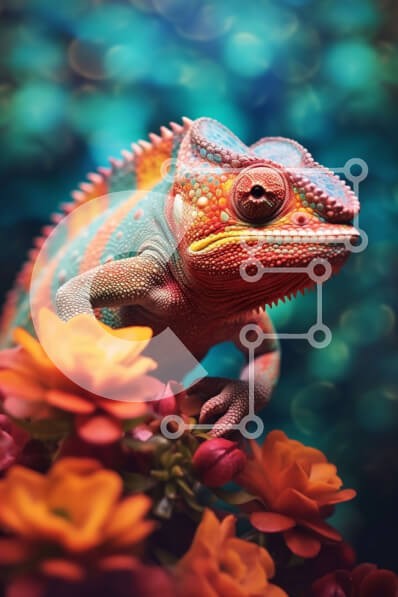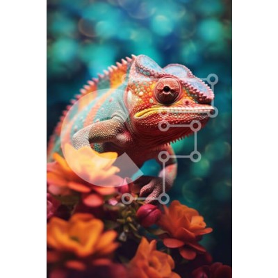 Υπάρχει δυνατότητα προσωποποίησης με δική σας φωτογραφία και προσαρμογής διαστάσεων κατόπιν παραγγελίας. Το συγεκεριμενο Puzzle 10x10 cm – 25 κομμ παρουσιαζει Αυτή η εικόνα παρουσιάζει έναν πολύχρωμο χαμαιλέοντα που κάθεται σε ένα κλαδί με φωτεινά λουλούδια στο φόντο. Ο χαμαιλέοντας αποτυπώνεται με μεγάλη λεπτομέρεια, αναδεικνύοντας τα μοναδικά του σχέδια και χρώματα. Το φόντο προσθέτει ένα όμορφο