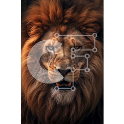 Υπάρχει δυνατότητα προσωποποίησης με δική σας φωτογραφία και προσαρμογής διαστάσεων κατόπιν παραγγελίας. Το συγεκεριμενο Puzzle 10x10 cm – 25 κομμ παρουσιαζει Αυτή η εικόνα παρουσιάζει μια κοντινή λήψη του προσώπου ενός λιονταριού. Με μια έντονη έκφραση, τα χαρακτηριστικά του λιονταριού είναι καλά καθορισμένα. από το φαρδύ ρύγχος μέχρι τα κοφτερά δόντια, τα μακριά θαμνώδη μουστάκια και τα μεγάλα κ