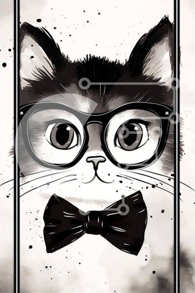 Υπάρχει δυνατότητα προσωποποίησης με δική σας φωτογραφία και προσαρμογής διαστάσεων κατόπιν παραγγελίας. Το συγεκεριμενο Puzzle 10x10 cm – 25 κομμ παρουσιαζει Η εικόνα απεικονίζει μια ασπρόμαυρη γάτα που φοράει γυαλιά και ένα παπιγιόν σε στυλ σμόκιν. Η γάτα κάθεται στη μέση του πλαισίου, με το κεφάλι της να ακουμπάει πάνω από το κεφάλι μιας άλλης γάτας. Φαίνεται να κοιτάζει ψηλά τον θεατή, κάτι πο