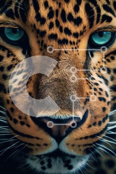 Υπάρχει δυνατότητα προσωποποίησης με δική σας φωτογραφία και προσαρμογής διαστάσεων κατόπιν παραγγελίας. Το συγεκεριμενο Puzzle 10x10 cm – 25 κομμ παρουσιαζει Αυτή η εικόνα είναι ένα κοντινό πλάνο του προσώπου μιας λεοπάρδαλης, που δείχνει τα όμορφα μπλε μάτια της. Η γούνα της λεοπάρδαλης είναι ορατή με περίπλοκες λεπτομέρειες και τα μάτια της είναι πραγματικά μαγευτικά. Αυτή είναι μια εκπληκτική