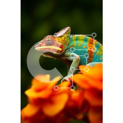 Υπάρχει δυνατότητα προσωποποίησης με δική σας φωτογραφία και προσαρμογής διαστάσεων κατόπιν παραγγελίας. Το συγεκεριμενο Puzzle 10x10 cm – 25 κομμ παρουσιαζει Αυτή η εικόνα παρουσιάζει έναν πολύχρωμο χαμαιλέοντα σκαρφαλωμένο σε ένα λουλούδι σε έναν κήπο. Ο χαμαιλέοντας είναι στο επίκεντρο, επιδεικνύοντας τα έντονα χρώματα και τα περίπλοκα μοτίβα του. Το λουλούδι προσθέτει ένα ποπ χρώμα στην εικόνα