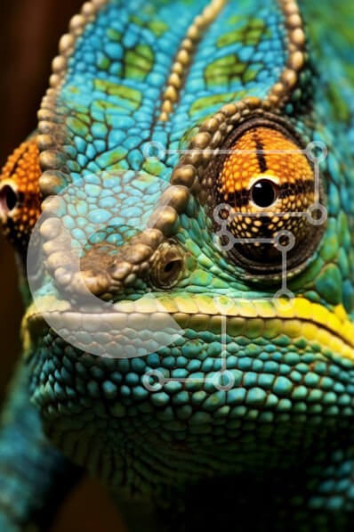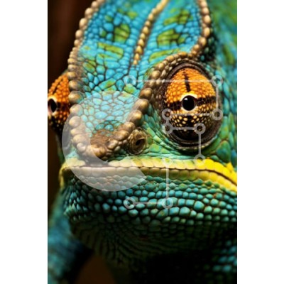 Υπάρχει δυνατότητα προσωποποίησης με δική σας φωτογραφία και προσαρμογής διαστάσεων κατόπιν παραγγελίας. Το συγεκεριμενο Puzzle 10x10 cm – 25 κομμ παρουσιαζει Αυτή η κοντινή φωτογραφία καταγράφει τις περίπλοκες λεπτομέρειες του προσώπου ενός χαμαιλέοντα, με το λαμπερό μπλε και κίτρινο δέρμα του, τα μεγάλα στρογγυλά μάτια και τη μακριά κολλώδη γλώσσα του. Το δέρμα είναι ανάγλυφο και ανώμαλο με μικρ