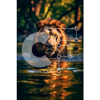 Υπάρχει δυνατότητα προσωποποίησης με δική σας φωτογραφία και προσαρμογής διαστάσεων κατόπιν παραγγελίας. Το συγεκεριμενο Puzzle 10x10 cm – 25 κομμ παρουσιαζει Αυτή η εικόνα παρουσιάζει ένα λιοντάρι να στέκεται στο νερό, με τα πόδια του βυθισμένα και τη γούνα του βρεγμένη. Το λιοντάρι φαίνεται χαλαρό και ήρεμο, απολαμβάνοντας τη δροσιά του νερού μια ζεστή μέρα. Το περιβάλλον είναι θολό, δίνοντας στ