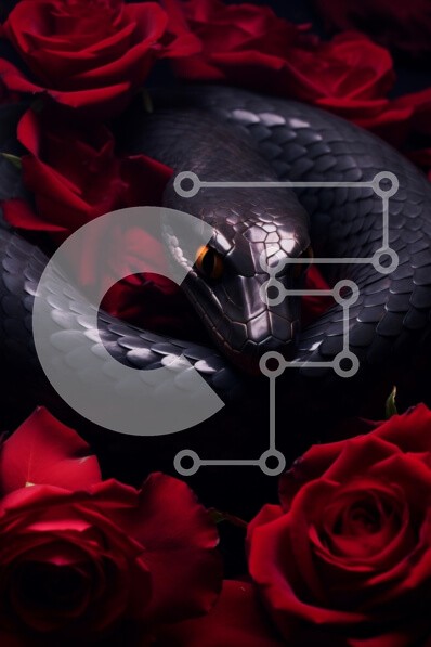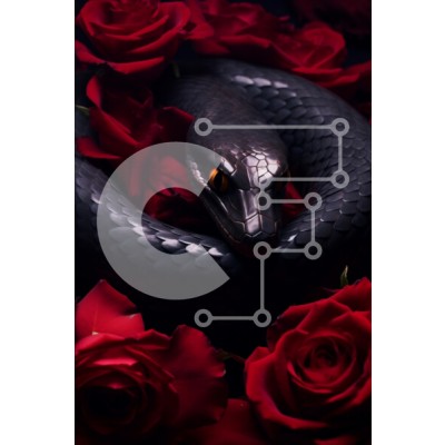 Υπάρχει δυνατότητα προσωποποίησης με δική σας φωτογραφία και προσαρμογής διαστάσεων κατόπιν παραγγελίας. Το συγεκεριμενο Puzzle 10x10 cm – 25 κομμ παρουσιαζει Η εικόνα παρουσιάζει ένα μαύρο φίδι κουλουριασμένο με χάρη ανάμεσα σε ζωηρά κόκκινα τριαντάφυλλα. Τα λέπια του φιδιού λάμπουν με μια λεπτή λάμψη, σε αντίθεση με τα πλούσια πέταλα των τριαντάφυλλων. Το εντυπωσιακό πορτοκαλί μάτι του τραβά την