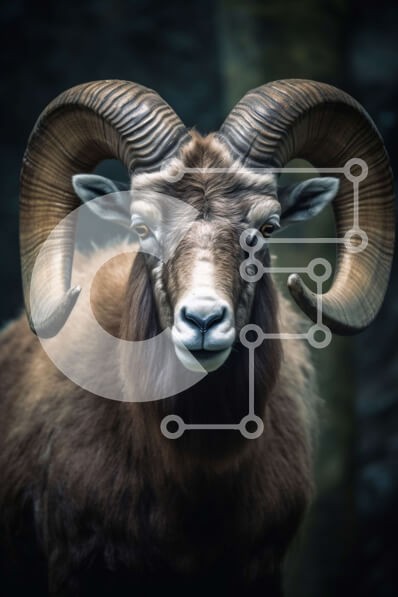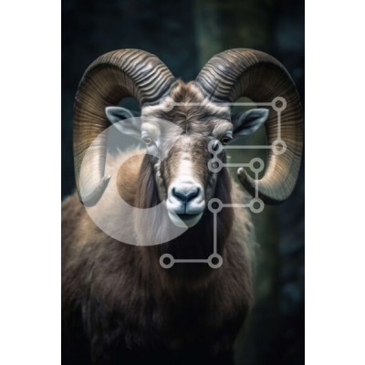 Υπάρχει δυνατότητα προσωποποίησης με δική σας φωτογραφία και προσαρμογής διαστάσεων κατόπιν παραγγελίας. Το συγεκεριμενο Puzzle 10x10 cm – 25 κομμ παρουσιαζει Αυτή η εικόνα απεικονίζει ένα μεγάλο καφέ κριάρι με σγουρά κέρατα να στέκεται σε ένα σκοτεινό δάσος. Το κριάρι έχει σκούρο καφέ τρίχωμα και μακριά, σγουρά κέρατα που κυρτώνουν προς τα πάνω. Τα σκούρα μάτια και τα φουσκωμένα ρουθούνια του προ