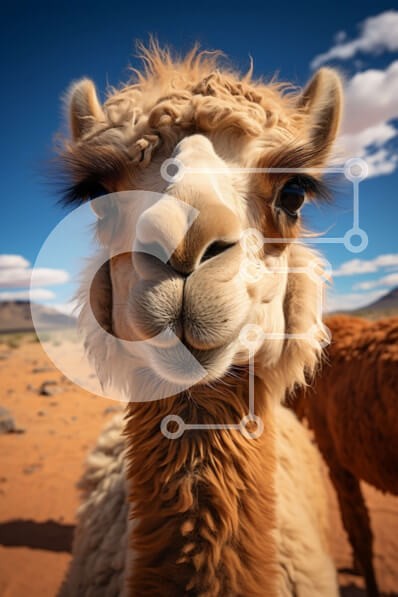 Υπάρχει δυνατότητα προσωποποίησης με δική σας φωτογραφία και προσαρμογής διαστάσεων κατόπιν παραγγελίας. Το συγεκεριμενο Puzzle 10x10 cm – 25 κομμ παρουσιαζει Αυτή η εικόνα απεικονίζει ένα κοντινό πλάνο του προσώπου μιας λάμας. Η λάμα κοιτάζει κατευθείαν την κάμερα με μια περίεργη έκφραση. Έχει απαλή, χνουδωτή γούνα, μακριές βλεφαρίδες και ζεστά καστανά μάτια. Το φόντο είναι ένας καταγάλανος ουραν