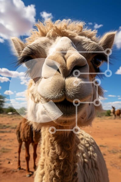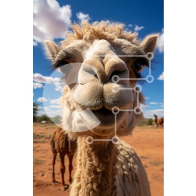 Υπάρχει δυνατότητα προσωποποίησης με δική σας φωτογραφία και προσαρμογής διαστάσεων κατόπιν παραγγελίας. Το συγεκεριμενο Puzzle 10x10 cm – 25 κομμ παρουσιαζει Αυτή η εικόνα είναι μια κοντινή λήψη ενός χαμογελαστού αλπακά. Το αλπακά κοιτάζει απευθείας την κάμερα και έχει απαλή, χνουδωτή γούνα και μεγάλα, εκφραστικά μάτια. Το φόντο είναι ένας καταγάλανος ουρανός με μερικά διάσπαρτα σύννεφα. Υπάρχουν