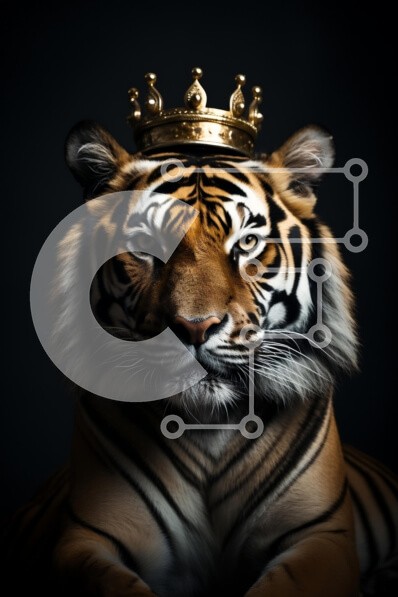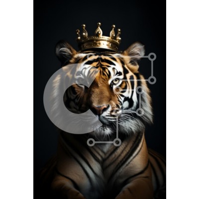 Υπάρχει δυνατότητα προσωποποίησης με δική σας φωτογραφία και προσαρμογής διαστάσεων κατόπιν παραγγελίας. Το συγεκεριμενο Puzzle 10x10 cm – 25 κομμ παρουσιαζει Αυτή η εικόνα παρουσιάζει μια μεγαλοπρεπή τίγρη με ένα χρυσό στέμμα που στηρίζεται στο κεφάλι της, σε σκούρο φόντο. Οι εντυπωσιακές πορτοκαλί και μαύρες ρίγες της τίγρης τονίζονται έντονα, επιδεικνύοντας την ισχυρή παρουσία της. Το ζώο κοιτά