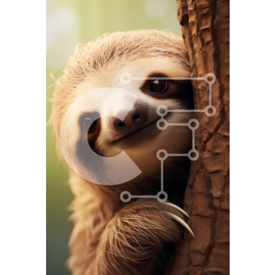 Υπάρχει δυνατότητα προσωποποίησης με δική σας φωτογραφία και προσαρμογής διαστάσεων κατόπιν παραγγελίας. Το συγεκεριμενο Puzzle 10x10 cm – 25 κομμ παρουσιαζει Η εικόνα παρουσιάζει μια γοητευτική νωθρότητα που κρυφοκοιτάζει πίσω από ένα δέντρο, δείχνοντας το αξιολάτρευτο πρόσωπο και τα μεγάλα, εκφραστικά μάτια της. Η γούνα της νωθρής εμφανίζεται απαλή και αφράτη, συνδυάζεται αρμονικά με την υφή του