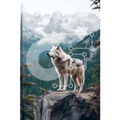 Υπάρχει δυνατότητα προσωποποίησης με δική σας φωτογραφία και προσαρμογής διαστάσεων κατόπιν παραγγελίας. Το συγεκεριμενο Puzzle 10x10 cm – 25 κομμ παρουσιαζει Αυτή η εικόνα απεικονίζει έναν μοναχικό λευκό λύκο να στέκεται σε μια βραχώδη επιφάνεια, με μια εκπληκτική θέα σε μια κοιλάδα και χιονισμένα βουνά στο βάθος. Ο λύκος έχει ένα εντυπωσιακό ασημί παλτό και διαπεραστικά μπλε μάτια. Ο ουρανός είν